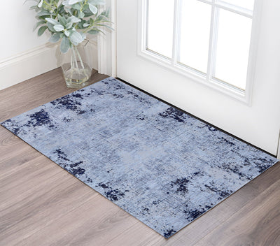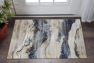 Home Outfitters 2' X 3' Ivory and Blue Abstract Distressed Area Rug