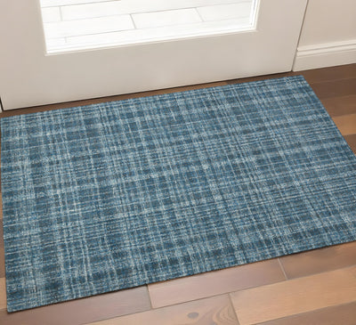 Home Outfitters 2' X 3' Ivory and Navy Blue Geometric Distressed Area Rug