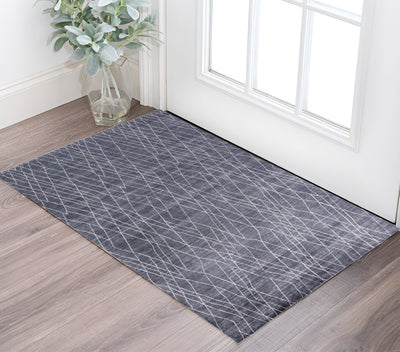 Home Outfitters 2' X 3' Blue and Silver Abstract Shag Printed Washable Non Skid Area Rug