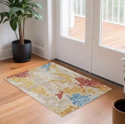 Home Outfitters 2' X 3' Blue and Yellow Abstract Printed Washable Non Skid Area Rug