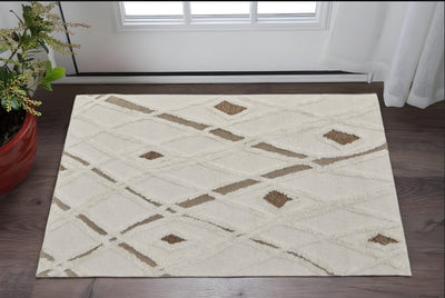 Home Outfitters 2' X 3' Ivory and Gray Geometric Non Skid Area Rug