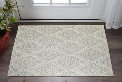 Home Outfitters 2' X 3' Ivory and Navy Blue Damask Distressed Area Rug