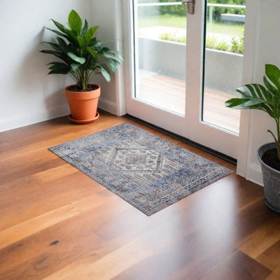 Home Outfitters 2' X 4' Ivory and Blue Geometric Distressed Non Skid Area Rug