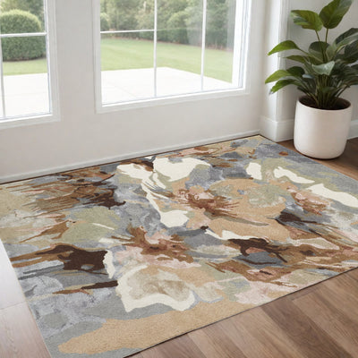 Home Outfitters 2' X 3' Gray and Ivory Floral Area Rug