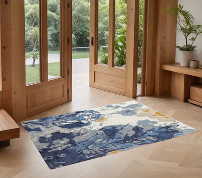 Home Outfitters 2' X 3' Ivory and Blue Floral Area Rug
