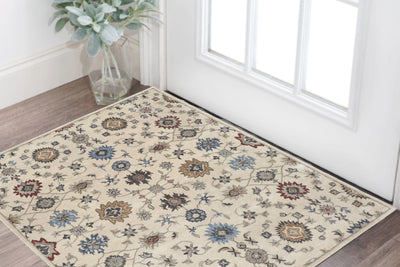 Home Outfitters 2' X 4' Ivory Red and Blue Floral Distressed Non Skid Area Rug