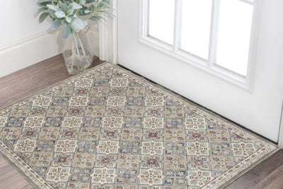 Home Outfitters 2' X 4' Blue and Yellow Trellis Distressed Non Skid Area Rug