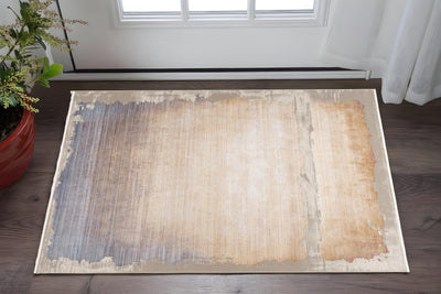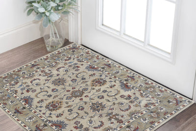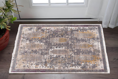 Home Outfitters 2' X 4' Ivory and Yellow Floral Medallion Distressed Non Skid Area Rug