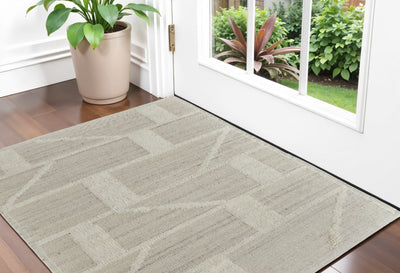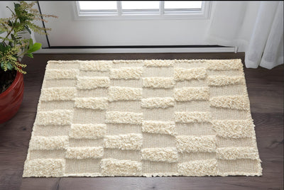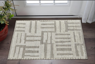 Home Outfitters 2' X 3' Ivory Wool Geometric Hand Woven Area Rug