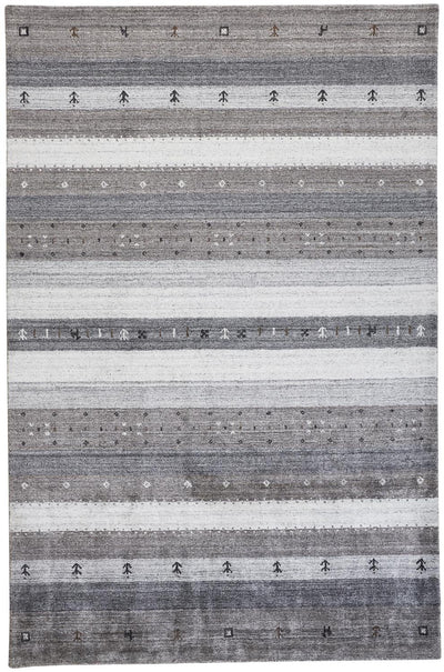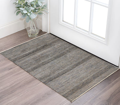 Home Outfitters 2' X 4' Gray and Ivory Striped Power Loom Distressed Area Rug