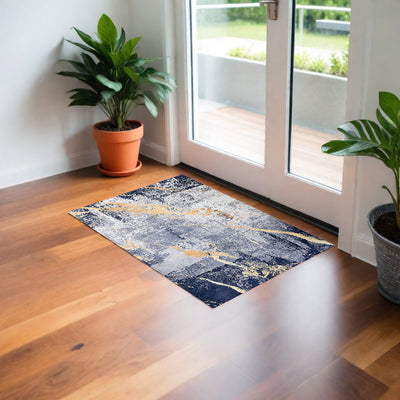 Home Outfitters 2' X 3' Blue and Ivory Abstract Area Rug