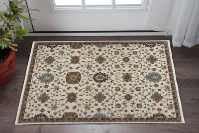 Home Outfitters 2' X 3' Ivory Red and Orange Medallion Power Loom Area Rug