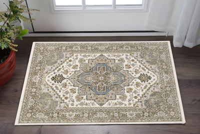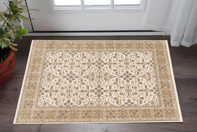 Home Outfitters 2' X 3' Ivory Tan and Gold Medallion Power Loom Area Rug