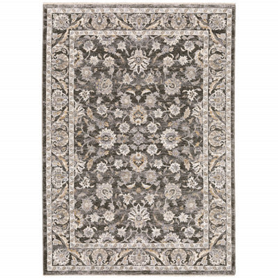 Home Outfitters 6' Charcoal and Gray Floral Power Loom Runner Rug
