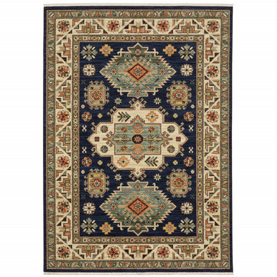 Home Outfitters 2' X 3' Ivory Blue and Orange Medallion Distressed Washable Area Rug