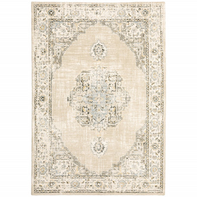 Home Outfitters 2' X 3' Ivory Tan And Gray Power Loom Area Rug