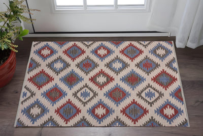Home Outfitters 2' X 3' Ivory and Blue Geometric Hand Knotted Area Rug