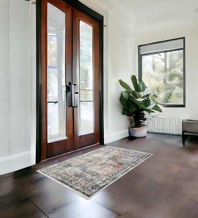 Home Outfitters 2' X 3' Tan Brown And Gray Power Loom Distressed Area Rug