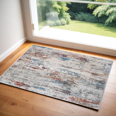 Home Outfitters 2' X 3' Blue Gray And Ivory Abstract Hand Woven Area Rug