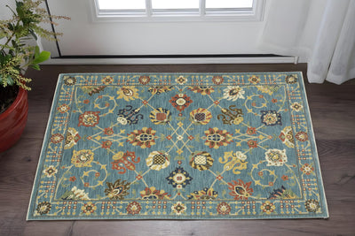 Home Outfitters 2' X 3' Blue Pink And Purple Floral Power Loom Area Rug