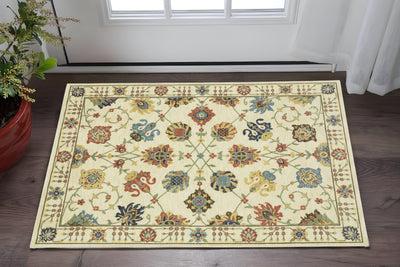Home Outfitters 2' X 3' Tan Orange And Blue Floral Hand Knotted Stain Resistant Area Rug