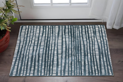 Home Outfitters 2' X 3' Blue And Ivory Striped Stain Resistant Area Rug