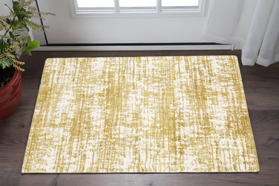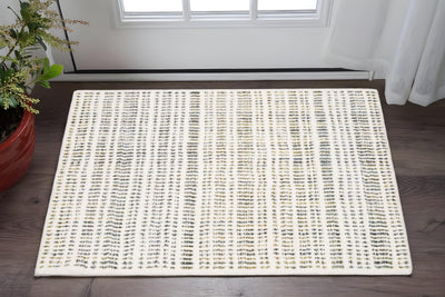 Home Outfitters 2' X 3' Yellow And Ivory Striped Dhurrie Hand Woven Stain Resistant Area Rug