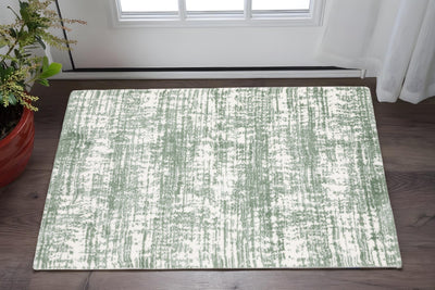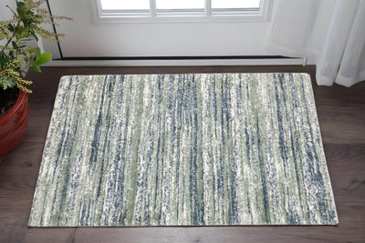 Home Outfitters 2' X 3' Gray Green And Ivory Striped Distressed Stain Resistant Area Rug