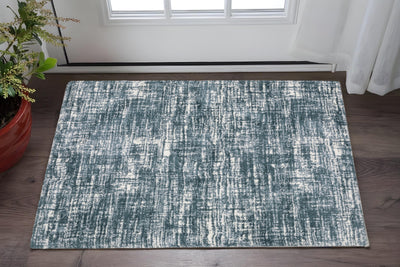 Home Outfitters 2' X 3' Blue Green And Black Abstract Hand Woven Stain Resistant Area Rug