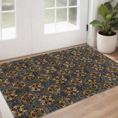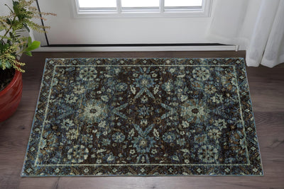 Home Outfitters 2' X 3' Brown Blue And Ivory Abstract Power Loom Distressed Area Rug