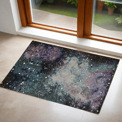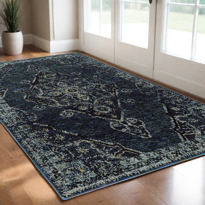 Home Outfitters 2' X 3' Blue Green And Ivory Abstract Power Loom Distressed Area Rug