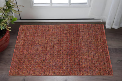 Home Outfitters 2' X 3' Blue and Red Wool Abstract Hand Knotted Area Rug