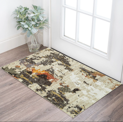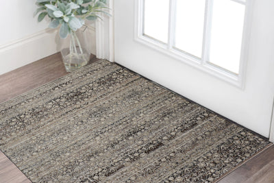 Home Outfitters 2' X 3' Brown Ivory And Tan Floral Power Loom Distressed Area Rug