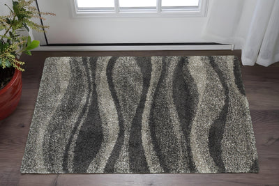 Home Outfitters 2' X 3' Gray Silver And Black Wool Striped Hand Knotted Stain Resistant Area Rug