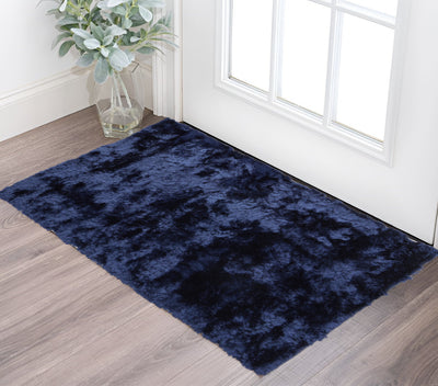 Home Outfitters 2' X 3' Blue and Black Wool Abstract Hand Tufted Area Rug
