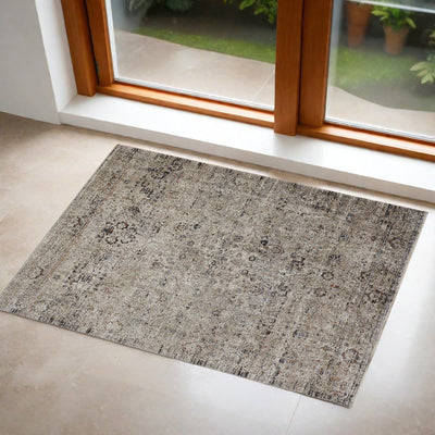 Home Outfitters 2' X 3' Tan Brown And Ivory Floral Power Loom Distressed Area Rug