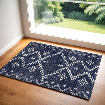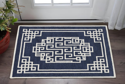 Home Outfitters 2' X 3' Blue And Ivory Wool Geometric Tufted Handmade Area Rug
