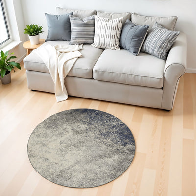 Home Outfitters 2' X 3' Ivory Gray and Blue Abstract Power Loom Area Rug With Fringe