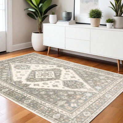 Home Outfitters 7' Ivory And Gray Floral Medallion Distressed Runner Rug