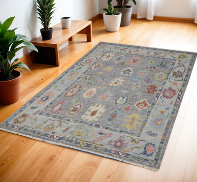 Home Outfitters 7' Gray And Pink Floral Runner Rug