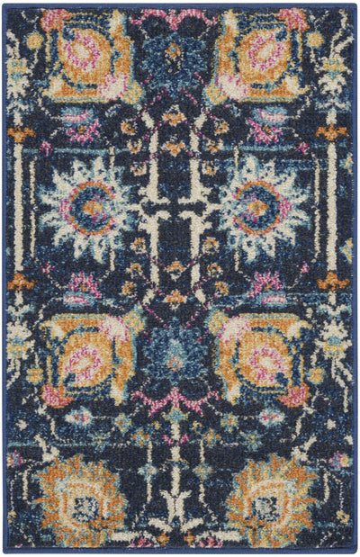 Home Outfitters 6' Navy Blue Floral Power Loom Runner Rug