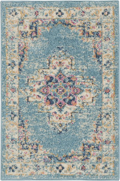 Home Outfitters 2' X 3' Blue And Ivory Medallion Distressed Area Rug