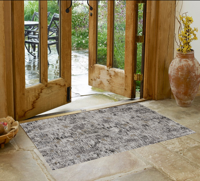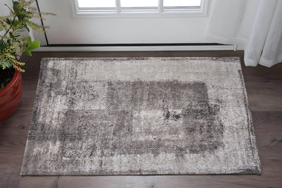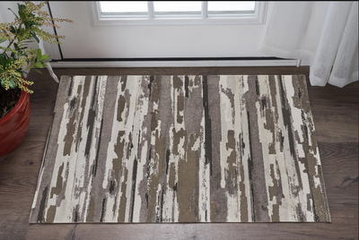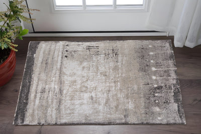 Home Outfitters 2' X 3' Gray Cream And Taupe Abstract Distressed Stain Resistant Area Rug