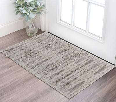 Home Outfitters 2' X 3' Gray And Ivory Geometric Distressed Stain Resistant Area Rug