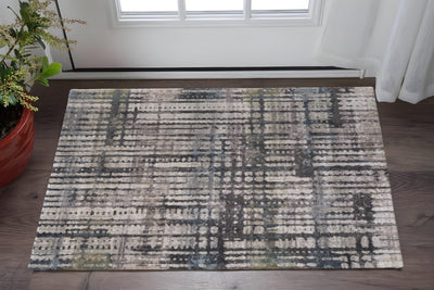 Home Outfitters 2' X 3' Gray Blue Taupe And Cream Abstract Distressed Stain Resistant Area Rug