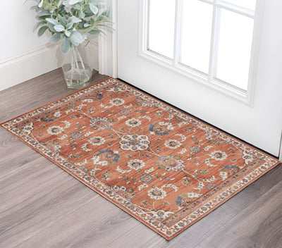 Home Outfitters 2' X 3' Red And Ivory Medallion Distressed Area Rug