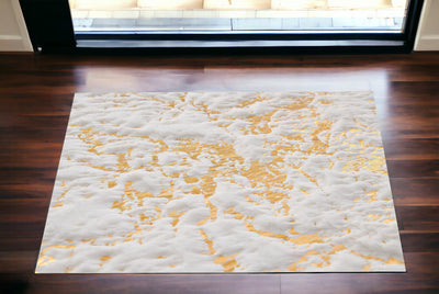 Home Outfitters 2' X 3' Yellow And Ivory Medallion Area Rug