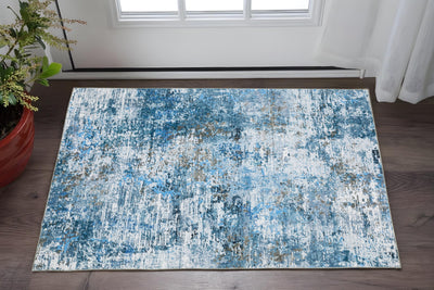 Home Outfitters 2' X 3' Ivory And Blue Abstract Area Rug