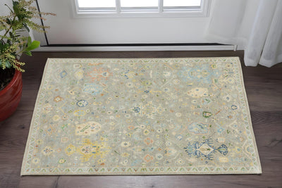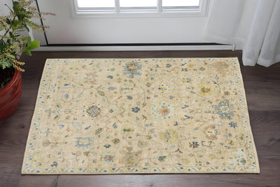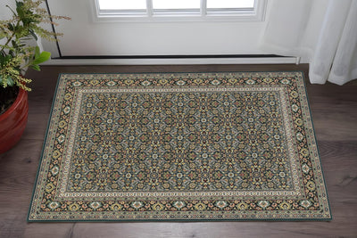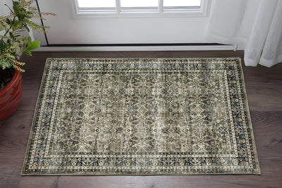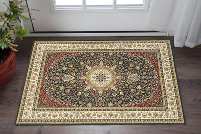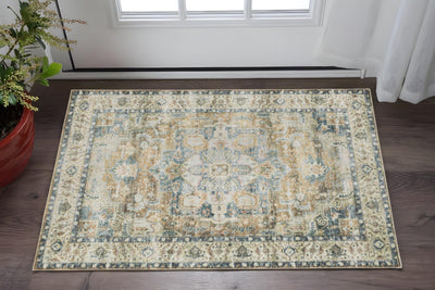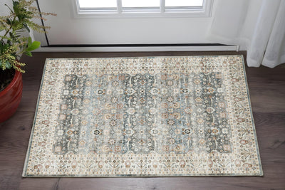 Home Outfitters 2' X 3' Ivory Gold Grey And Blue Oriental Power Loom Stain Resistant Area Rug