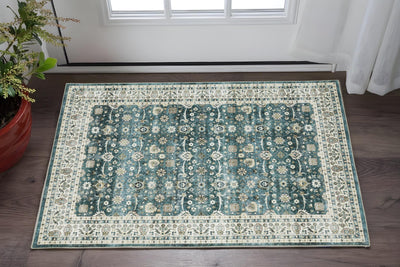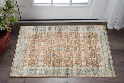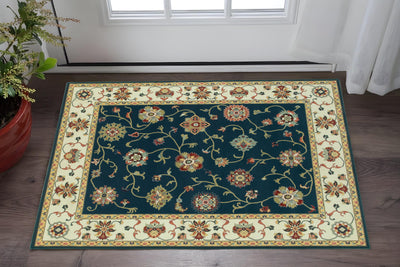Home Outfitters 2' X 3' Teal Blue Rust Gold And Ivory Floral Power Loom Stain Resistant Area Rug